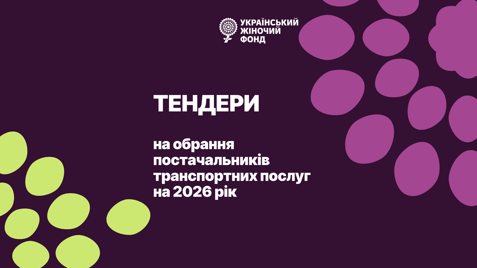 Український Жіночий Фонд (УЖФ) оголошує тендер на відбір постачальників транспортних послуг протягом 2026 року